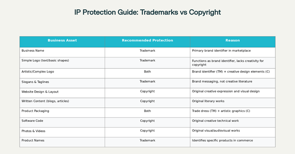 Apple: A tech giant, the bitten apple logo receives trademark protection as a brand identifier, while their software interfaces, marketing designs, and creative content benefit from copyright protection. Different assets need different protection strategies.